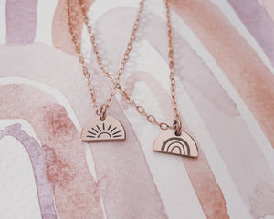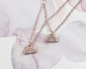 Choose from 14k Gold Fill in Rose or Yellow Gold, or solid sterling silver. All our pieces are cut, filed and polished by hand out of sheets of ethically sourced precious metals. We finish every single piece by hand using only professional materials and no machines. We pride myself in the shine and sparkle that we put into these pieces! We hope you enjoy them as much as we love creating them. They’re a labour of love!