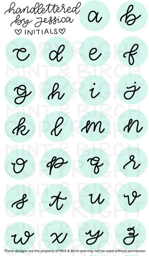 In the notes, please let us know which initial(s) you would like. Below are initials that are available. Please note that only lowercase initials are available for this listing, or it can be done as a custom hand lettered piece.